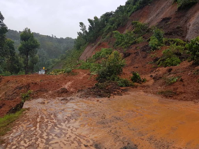 Polisi y’u Rwanda iratangaza ko imvura nyinshi yaguye mu ijoro rishyira kuri uyu wa gatatu tariki 29 Mata 2020 yateje inkangu mu muhanda werekera i Karongi uturutse i Muhanga.