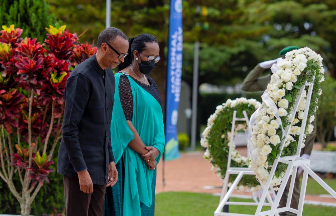 Perezida wa Repubulika y’u Rwanda, Paul Kagame, na Madamu Jeannette Kagame, bunamiye Intwari z’u Rwanda mu rwego rwo kuziha icyubahiro, ndetse bashyira indabo ku kimenyetso cy’ubutwari, uyu muhango ukaba wabereye ku gicumbi cy’Intwari giherereye i Remera mu Mujyi wa Kigali.
