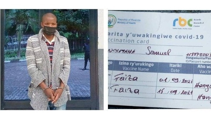Havugimana Sam wo mu Murenge wa Bugeshi Akagari ka Nsherima, afungiye kuri station ya Polisi ya Gisenyi mu Karere ka Rubavu, akaba akurikiranyweho icyaha cyo gucura ibyangombwa bigaragaza ko yikingije Covid-19.
