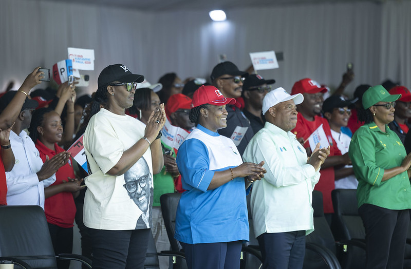 MC Brian wari uri gukorana n’abarimo Tidjara Kabendera, Manzi n’abandi, bari mu bashyushyaga abaturage bari babukereye mbere y’uko umukandida wa FPR ahagera.