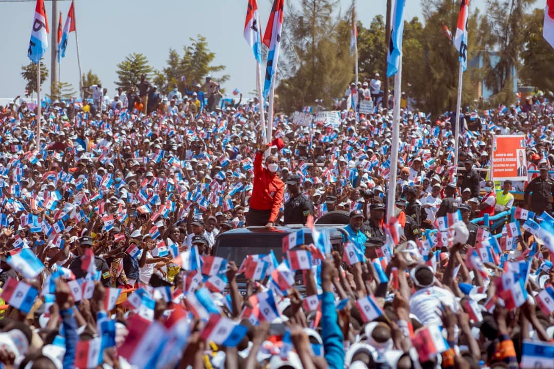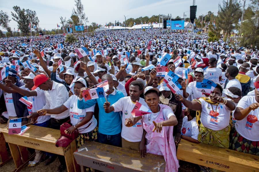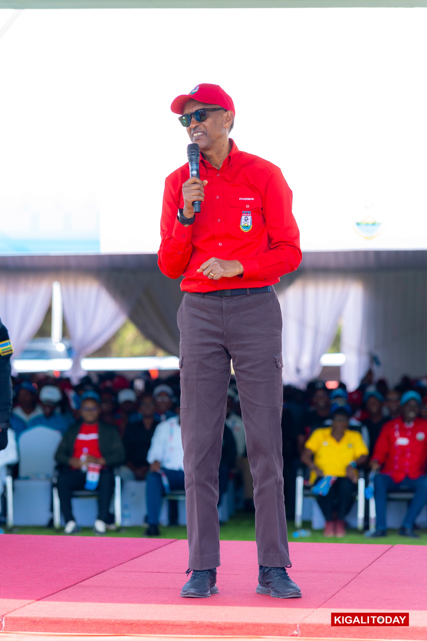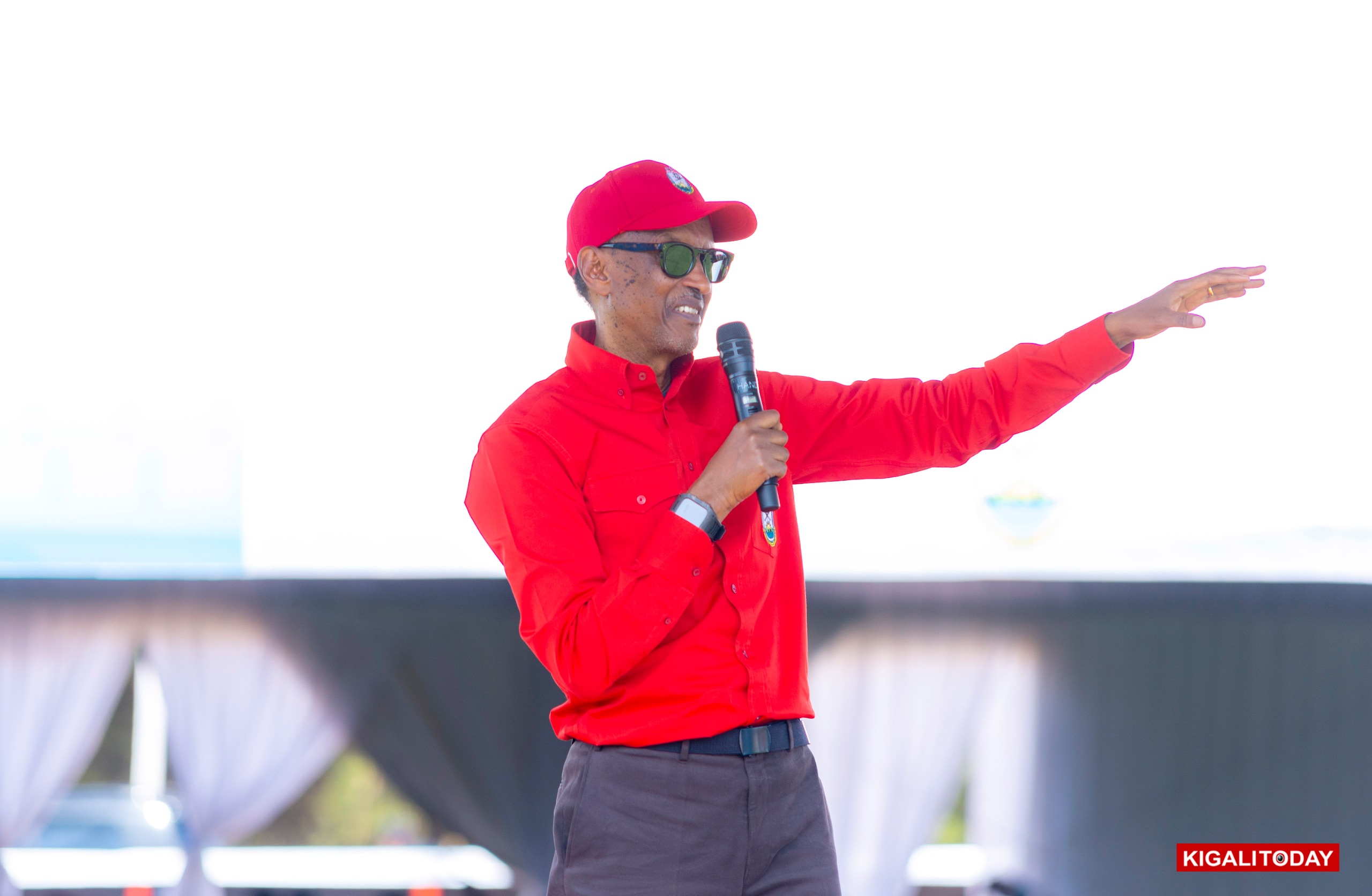 Umukandida Paul Kagame yasesekaye i Kirehe saa sita n’iminota 30 ahateraniye imbaga yari imutegereje, bishimira kumubona amaso ku maso, na we anyura hagati yabo mu bice bitandukanye baherereyemo agenda abasuhuza.