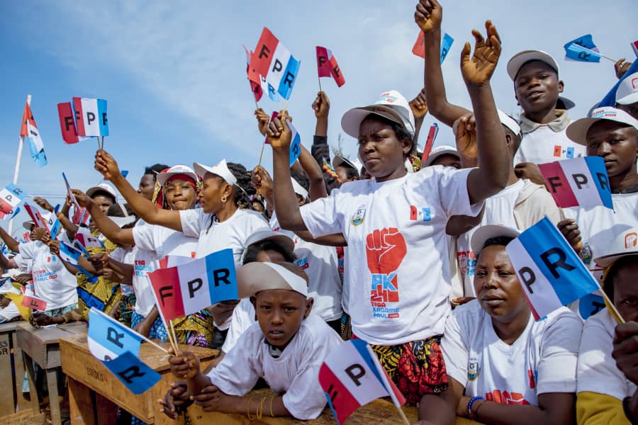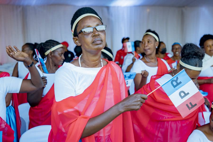 Abanyamuryango ba RPF Inkotanyi baturutse mu bice bitandukanye by’Uturere twa Kirehe na Ngoma bazindutse babukereye mu myambaro y’amabara aranga Umuryango FPR Inkotanyi baje kwakira umukandida wabo mu bikorwa byo kwiyamamaza.
