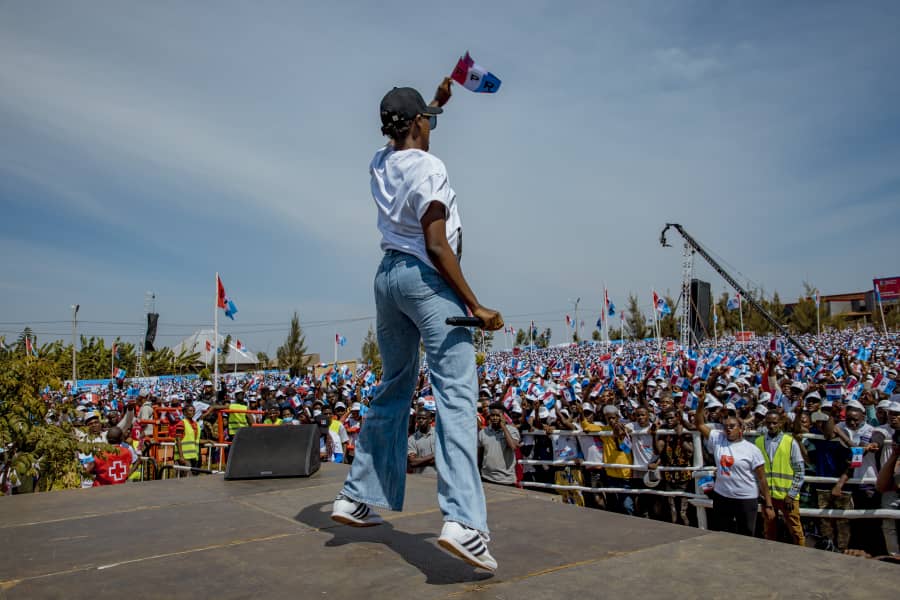 Mu gihe bari bategereje ko umukandida Paul Kagame ahagera, barasusurukijwe n’abahanzi batandukanye barimo Senderi, Bwiza, Ariel Wayz, Alyn Sano, Riderman, n’abandi.