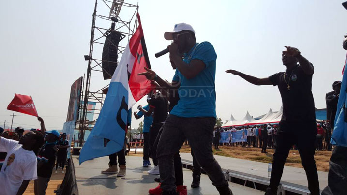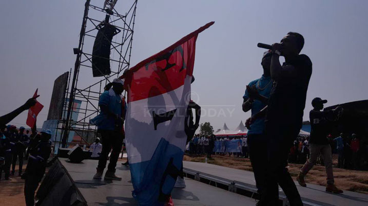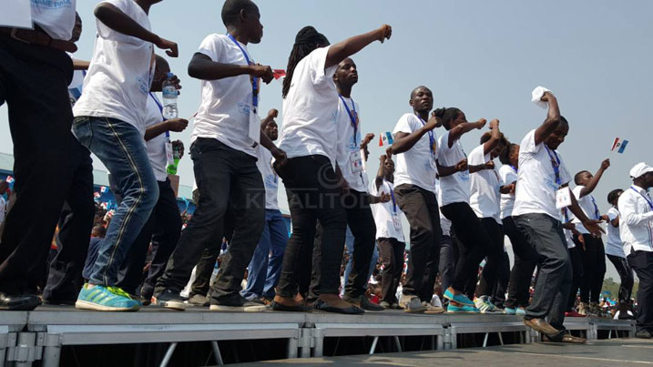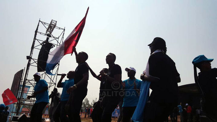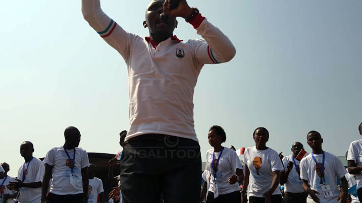 Mbere y’uko agera mu Ruhango, abo bahanzi babanje gususurutsa abaturage ibihumbi n’ibihumbi bitabiriye uwo muhango, baririmba indirimbo zamamaza Paul Kagame.