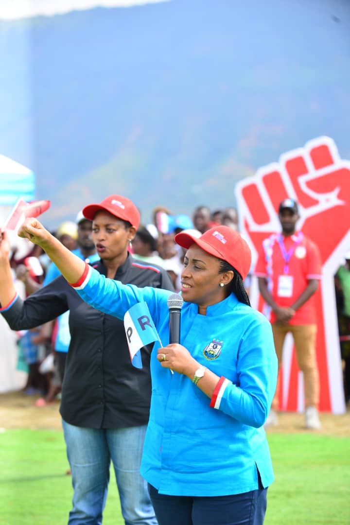 Abakandida-Depite ba FPR-Inkotanyi bakomoka mu Karere ka Gasabo biyamamarije imbere y’imbaga y’abanyamuryango bagera ku bihumbi 180 bari bateraniye ku Gisozi ni Murora Betty, Mugenzi N Leon na Uwizeye Marie Thérèse.
