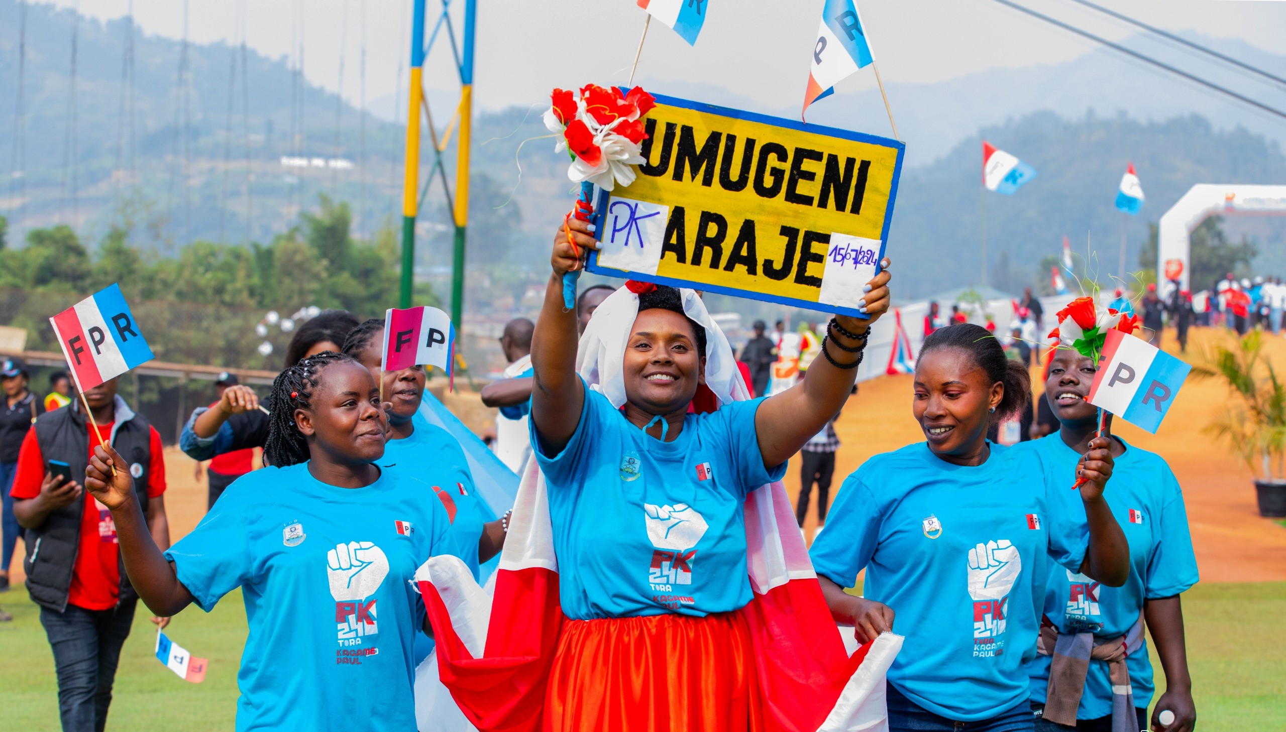 K’ubw’urukundo abaturage bamweretse, aho bakomeje kugaragaza imbamutima zabo ubwo Paul Kagame yabagezagaho ijambo, bagendaga bamusubuza muri aya magambo.