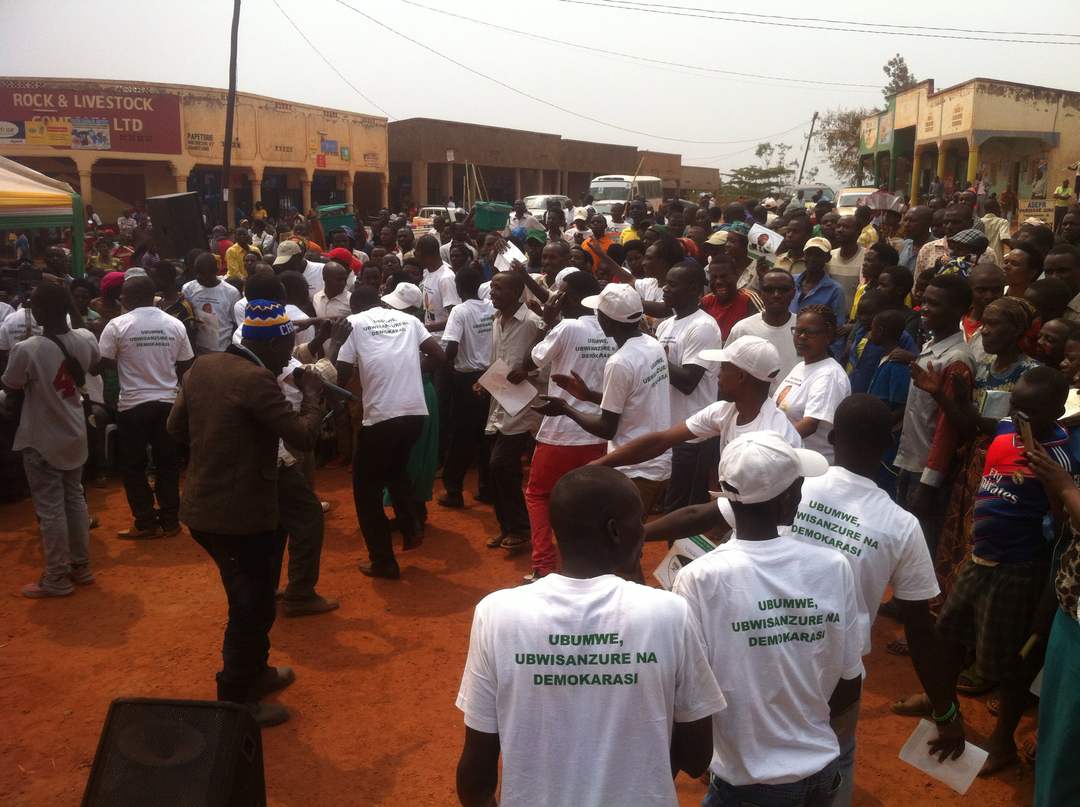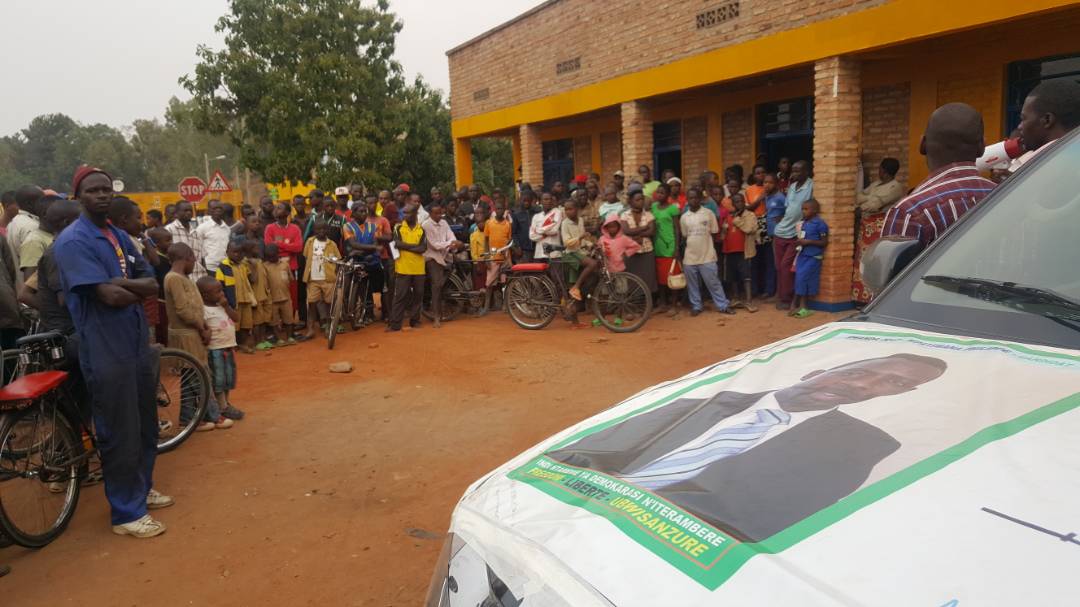 Ku isaha ya saa yine za mu gitondo nibwo umukandida Frank Habineza yageze mu Karere ka Bugesera mu Mujyi wa Nyamata, aho yazengurutse asuhuza abaturage bari muri uwo mujyi.
