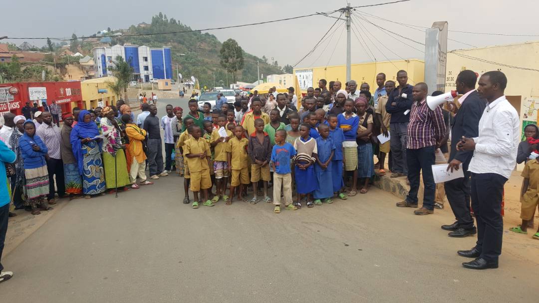 Ku i saa saba zirengaho iminota mike, nibwo yavuye mu Murenge wa Juuu ajya mu Mujyi wa Nyamata, nabwo asuhuza abaturage.
