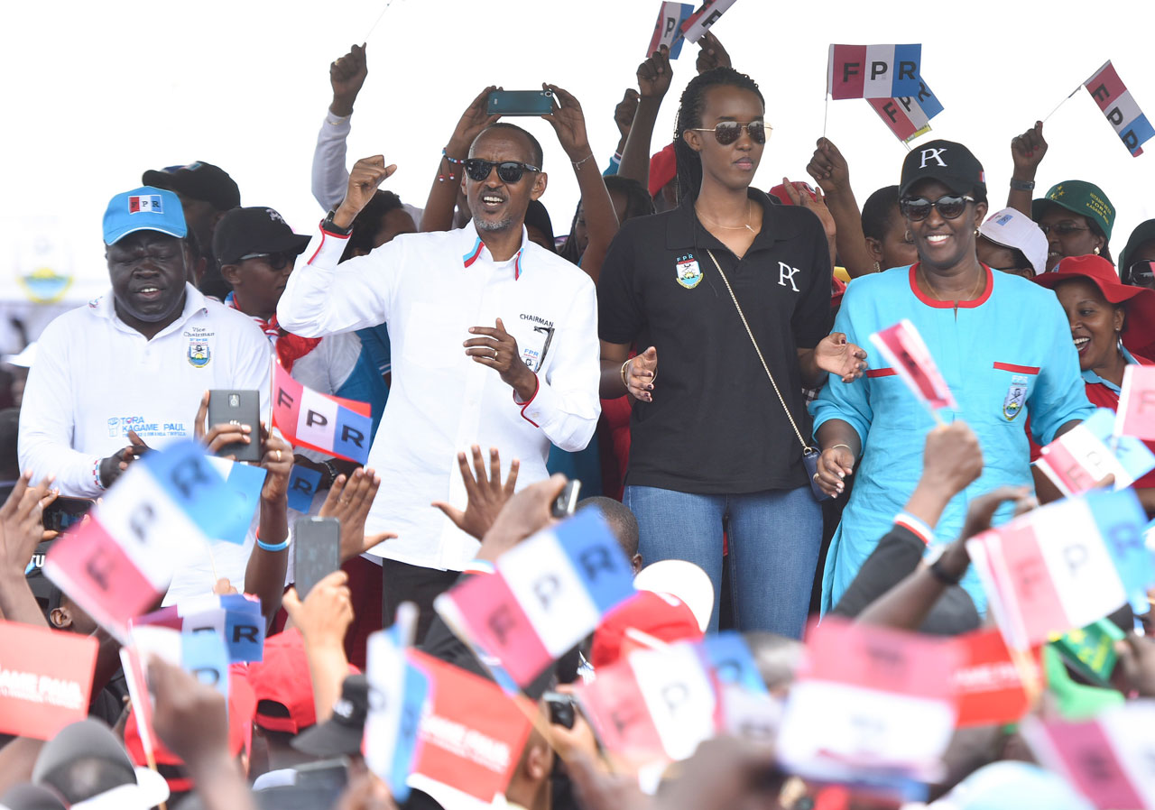 Paul Kagame umukandida wa FPR-Inkotanyi yakiranwe impundu n’abatuye Akarere ka Kayonza, ari naho afite urugo aruhukiramo mu masaha ya nyuma y’akazi.