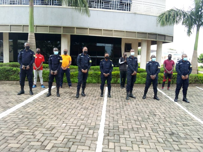 Abapolisi bafashwe barimo umwe ufite ipeti rya CIP, batatu bafite ipeti rya IP, umwe ufite ipeti rya AIP hamwe n’abandi babiri bafite ipeti rya Sergeant.