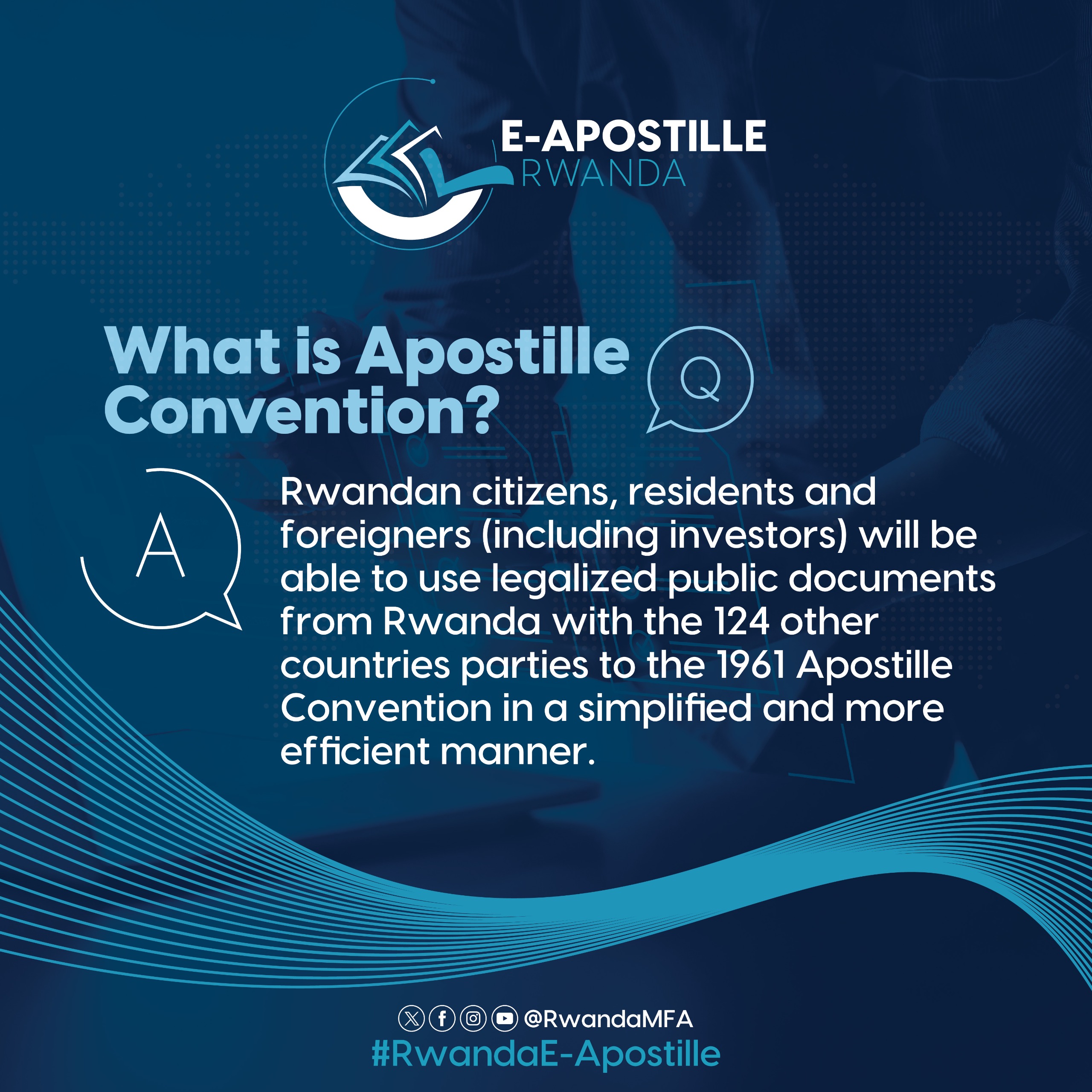 “Apostille Convention”, ni amasezerano yoroshya inzira ibyangombwa bibonekamo mu bihugu 125 byayashyizeho umukono. Ibi byorohereza abaturage n’abashoramari kubona serivisi mu mahanga.