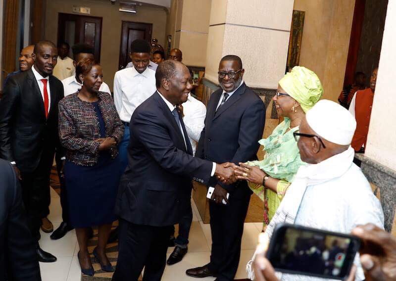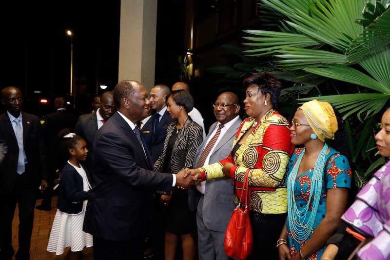 Muri uru ruzinduko Perezida Alassane Ouattarra azitabira umuhango wo gushyikiriza igihembo cyitiriwe Mo Ibrahim, uwahoze ari Perezida wa Liberia Madame Ellen Johnson Sirleaf.