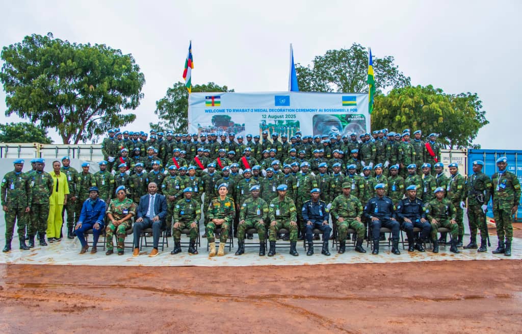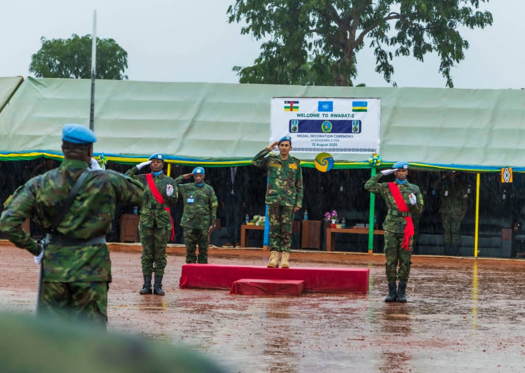 Ingabo z’u Rwanda (RDF) zigize batayo ya RWABAT-2, ziri mu butumwa bwo kugarura amahoro (MINUSCA) muri Santrafurika, zashyikirijwe imidari y’ishimwe kubera umusanzu wazo mu kugarura no kubungabunga amahoro muri icyo gihugu.