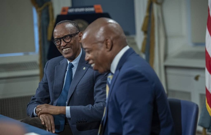 Perezida Paul Kagame uri mu ruzinduko muri Leta zunze Ubumwe za Amerika, ku gicamunsi cyo ku wa Gatanu tariki 16 Nzeri 2022, yahuye ndetse anaganira n’Umuyobozi w’Umujyi wa New York, Eric Adams.