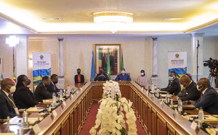 Mu ruzinduko arimo muri Repubulika ya Congo Brazzaville, Perezida Paul Kagame na mugenzi we Denis Sassou Nguesso, bagiranye ibiganiro byabereye mu muhezo. Igikorwa cyabaye kuri uyu wa Kabiri tariki 12 Mata 2022.