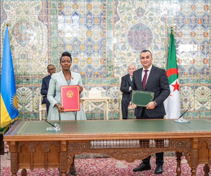 Amasezerano ajyanye n’uko gukuraho visa ku bafite izo pasiporo yasinywe na Minisitiri w’ububanyi n’amahanga wa Algeria Ahmed Attaf na mugenzi we w’u Rwanda Minisitiri Amb.Olivier Nduhungirehe.