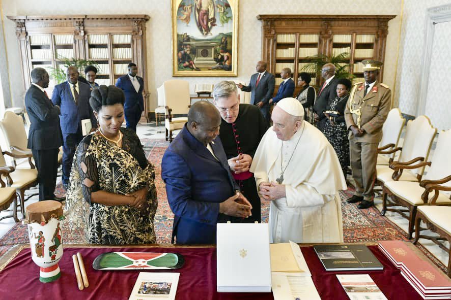 Perezida w’u Burundi, Evariste Ndayishimiye, aherekejwe n’umugore we, bagiriye uruzinduko i Vatican, bakirwa na Papa Francis ku wa Gatandatu tariki 26 Werurwe 2022.