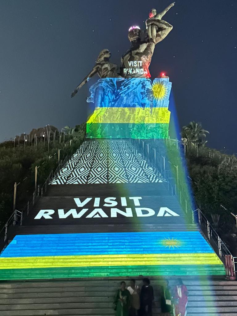Yagaragaje ko igikorwa cyo gucana ingazi zigera ku 198 n’ishusho nini biranga Monument de la Renaissance Africaine, mu mabara y’ibendera ry’u Rwanda mu gihe hizihizwa ukwibohora kw’Abanyarwanda, atari ishema ku Banyarwanda gusa ahubwo ari ishema ku Banyafurika bose.