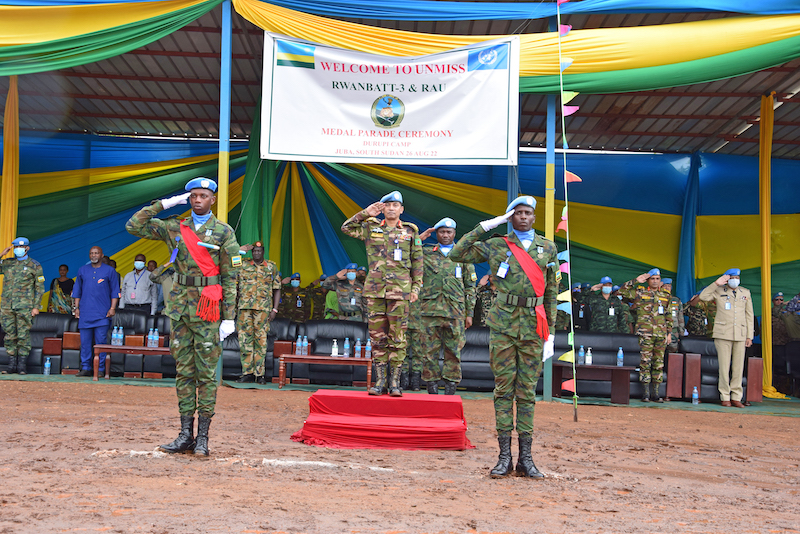 Ingabo z’u Rwanda zo muri Rwanbatt-3 n’umutwe w’Ingabo zirwanira mu kirere, bari mu butumwa bw’Umuryango w’Abibumbye bwo kubungabunga amahoro muri Sudani y’Epfo (UNMISS), bambitswe imidari y’ishimwe.