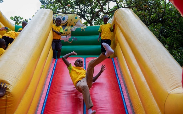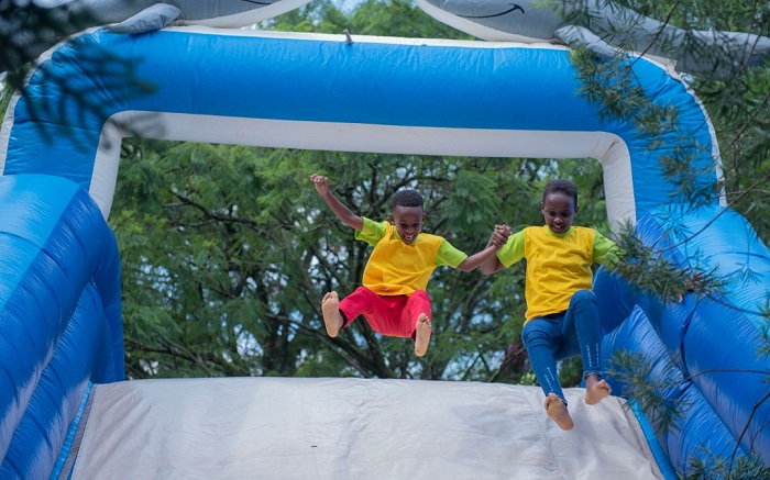 Mugenzi we witwa Gakire yagize ati “Nishimye cyane kuba naje hano, baduhaye ibikinisho byinshi bityo nkina n’inshuti zanjye n’abandi. Baduhaye impano zitandukanye zirimo n’imipira yo gukina, baduha ibiryo byiza ndetse tunywa na Fanta, twishimye cyane”.