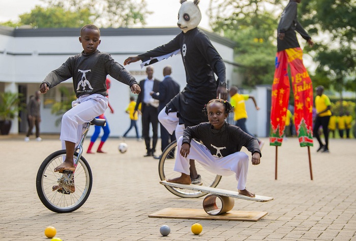Ikindi cyabashimishije ni imikino y’ubuhanga yerekanywe n’abana bo mu itsinda ryitwa ‘Rwanda Le Cirque du Soleil’, aho hari abagendera ku igare ry’ipine rimwe, abaca ku mugozi uri mu kirere, abasamagiza udupira n’ibindi.