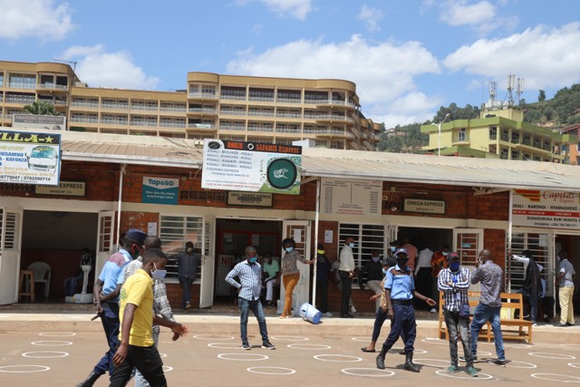 Umujyi wa Kigali ufatwa nk’izingiro ry’izo ngendo zerekeza hirya no hino mu Ntara. Imyiteguro irarimbanyije by’umwihariko muri Gare ya Nyabugogo. Amasosiyete atandukanye atwara abagenzi berekeza mu Ntara yamaze gushyiraho udushushanyo twerekana uko abantu bahagarara bahanye intera.