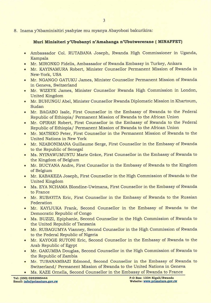 8. Inama y’Abaminisitiri yashyize mu myanya Abayobozi bakurikira: