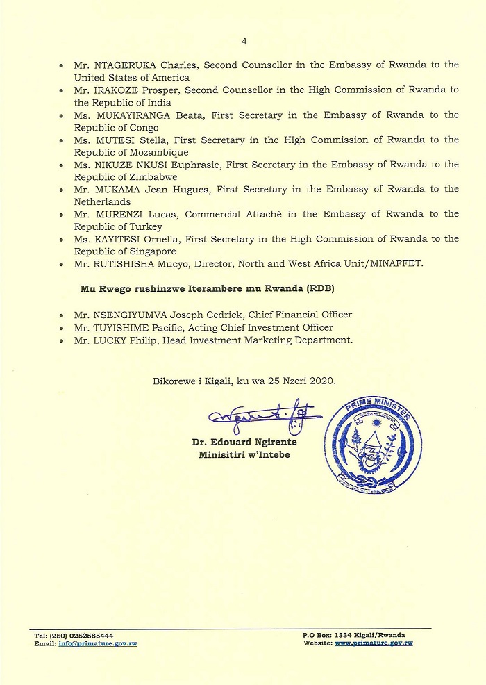 Itangazo ryashyizweho umukono na Minisitiri w’Intebe, Dr Edouard Ngirente