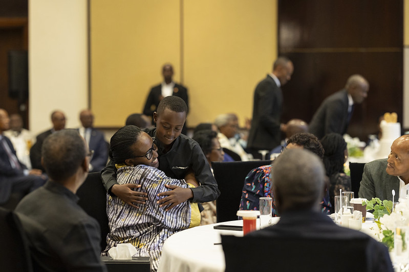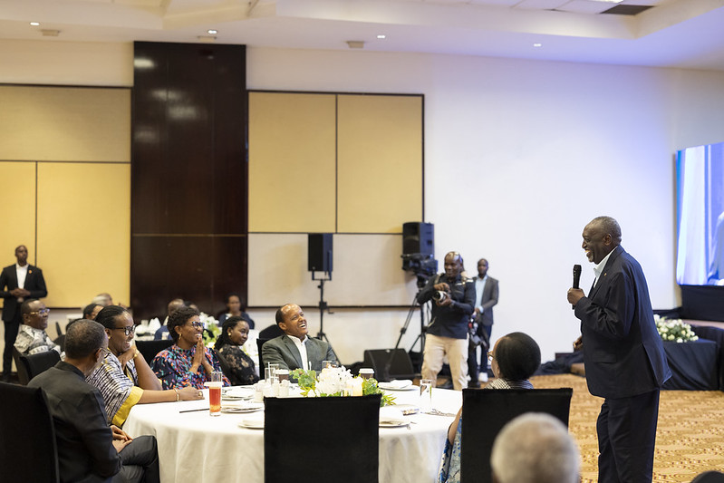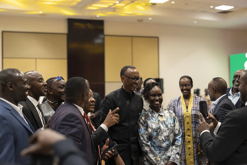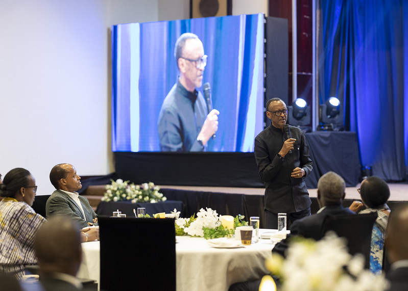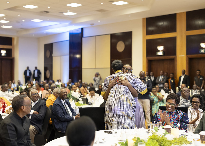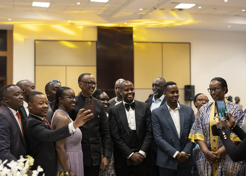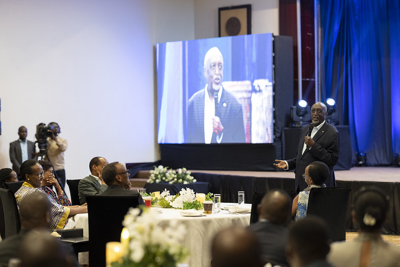 Perezida Paul Kagame na Madamu Jeannette Kagame, ku mugoroba wo ku wa Gatandatu tariki 23 Ugushyingo 2024, bifatanyije na Hon. Tito Rutaremara n’abo mu muryango we, kwizihiza isabukuru y’imyaka 80 amaze avutse.