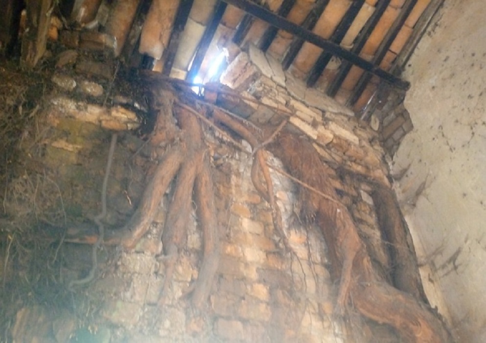 Ku rukuta rw’iyo nzu hafi y’igisenge cyayo niho icyo giti kireshya na metero zisaga 20 giterekeye, imizi yacyo ikaba yaragiye imanuka hasi inyuze mu matafari igera ubwo inatobora sima ibasha kwinjira mu bujyakuzimu bw’ubutaka.