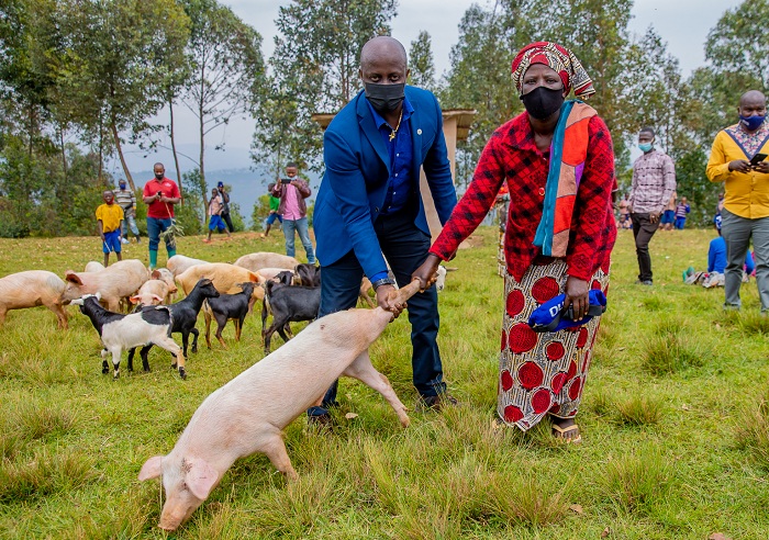 Ni amatungo agizwe n’ihene 100 hamwe n’ingurube 200, yagenewe abaturage bo mu mirenge 10 yo mu Karere ka Gicumbi, mu muhango wabereye mu Kagari ka Ngondore mu Murenge wa Byumba, kuri uyu wa Gatanu tariki 04 Gashyantare 2022.