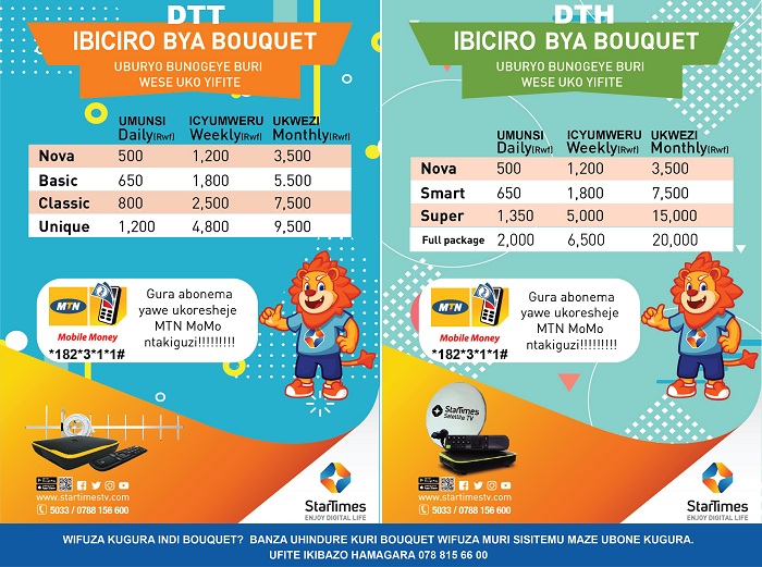 StarTimes iragira iti “Mwakomeza kugura abonema mukoresheje MTN Mobile Money, Pivot, Equity, Bpr, Gcom, FDI, vuba tukazatangira gukorana na BK, AirTel Money, na Mobicash.”