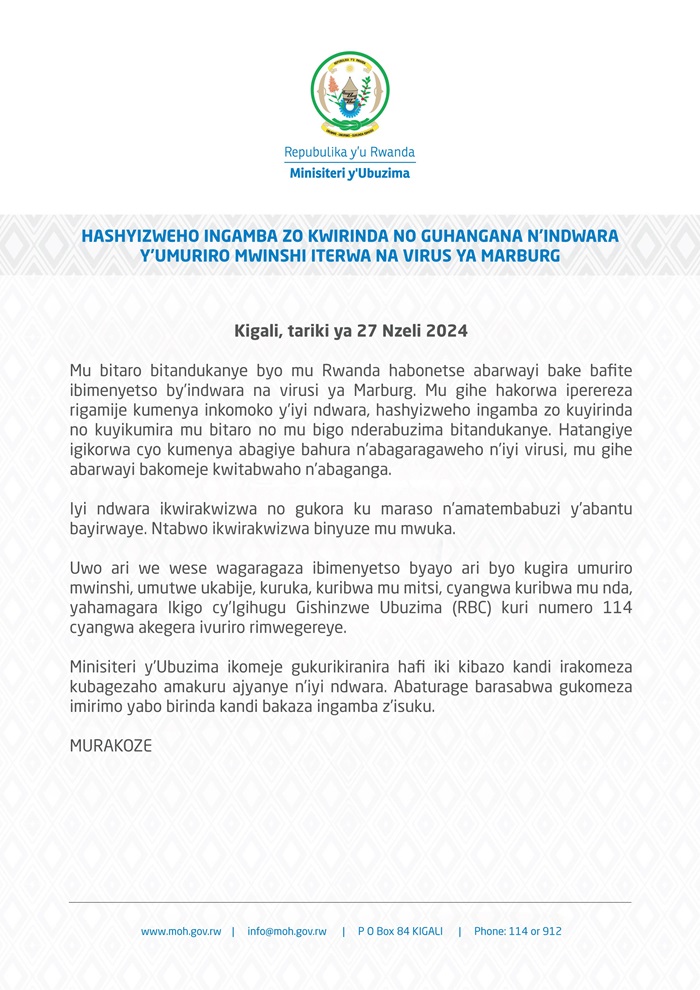 - Minisiteri y’Ubuzima yavuze aho ikeka ko Marburg yaturutse