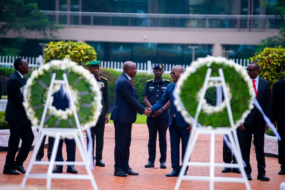 Ahagana saa yine z’igitondo kuri uyu wa Kane tariki 1 Gashyantare 2024, Abayobozi bakuru barimo Minisitiri w’Intebe, Dr Edouard Ngirente, bunamiye Intwari z’Igihugu ku Gicumbi cy’Intwari i Remera hafi ya Sitade Amahoro.