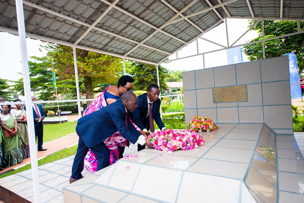 Nyuma y’uko Abayobozi bakuru bunamiye Intwari z’Igihugu, Minisitiri w’Ubumwe n’Inshingano Mboneragihugu, Dr Jean Damascène Bizimana, yayoboye igikorwa cyo gushyira indabo ku mva n’ibimenyetso by’Intwari z’Igihugu, igikorwa cyakozwe n’imiryango y’Intwari.