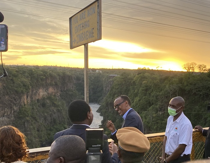 Ku munsi wa mbere w’urwo ruzinduko rwe, Perezida Kagame aherekejwe n’umukuru w’Igihugu cya Zambia na Madamu we, yatambagijwe bimwe mu bice by’ubukerarugendo biri mu mujyi wa Livingstone, aho yasuye isumo rirerire muri Afurika riri hagati ya Zambia na Zimbabwe rya ‘Victoria Falls’ ndetse n’ibyanya bicumbikiwemo inyamanswa zitandukanye.
