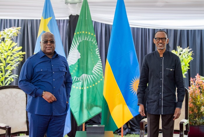 Perezida wa Repubulika y’u Rwanda, Paul Kagame, yakiriye Perezida Félix Antoine Tshisekedi wa Repubulika Iharanira Demokarasi ya Congo, ku mupaka munini wa La Corniche uhuza Goma na Gisenyi.