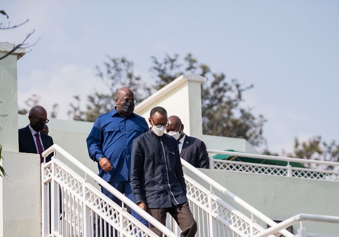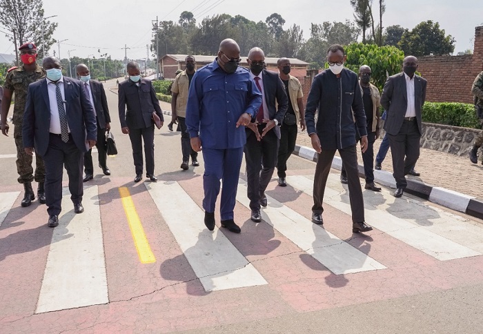Ahagana saa munani z’amanywa kuri uyu wa Gatanu tariki 25 Kamena 2021 nibwo abakuru b’igihugu byombi bahuriye ku mupaka uhuza Goma na Gisenyi bakomeza mu Rwanda gusura ibikorwa remezo byangijwe n’imitingito n’iruka ry’ibirunga.