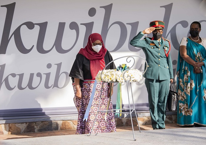 Samia Suluhu Hassan yasuye urwibutso rwa Jenoside rwa Kigali ruri ku Gisozi yunamira Abatutsi bishwe muri Jenoside barushyinguyemo, ndetse ku mugoroba yakirwa na Perezida Kagame ku meza muri Kigali Convention Centre, barasabana, ndetse baganira ku kurushaho guteza imbere umubano w’ibihugu byombi, u Rwanda na Tanzania.