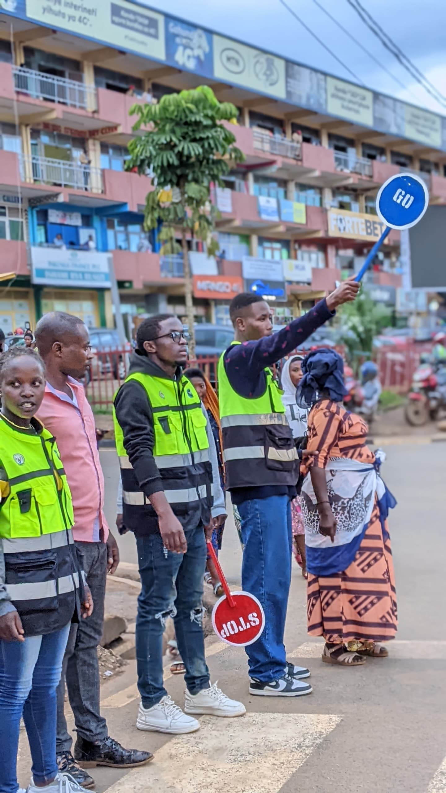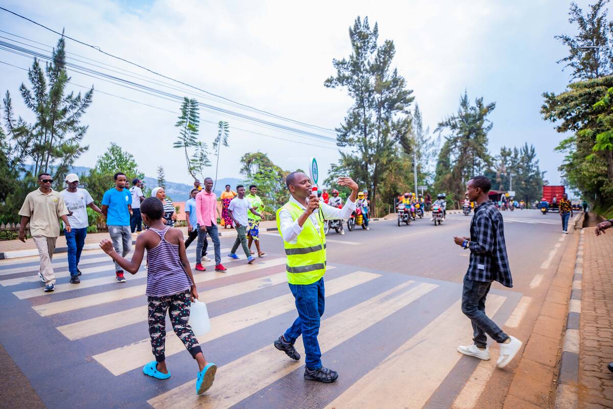 Ati “Abakorerabushake bafasha abagenzi kwambuka hatabayeho kubangamira ibinyabiziga igihe bageze ahagenewe kwambukira abanyamaguru, ‘Zebra crossing’ kuko bikumira impanuka zaturuka ku muyobozi w’ikinyabiziga ushobora kwambuka atabonye umugenzi cyangwa umugenzi wakoresha nabi ahamugenewe akaba yateza impanuka”.