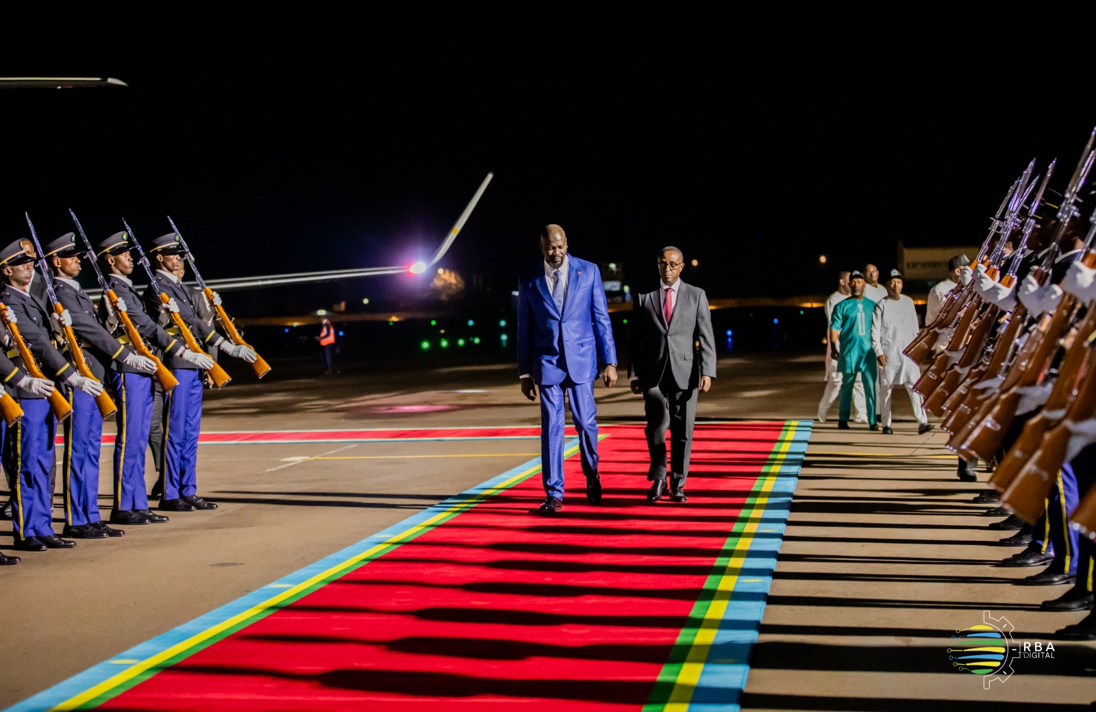 Perezida wa Guinée, Général Mamadi Doumbouya na we yageze i Kigali ku mugoroba wo kuri uyu wa Gatandatu, yakirwa na Minisitiri w’Umutekano mu Gihugu, Dr Vincent Biruta.