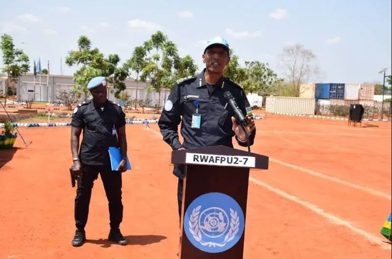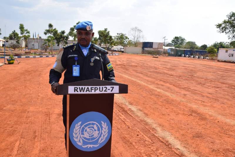 Umuyobozi w’Itsinda ry’abapolisi b’u Rwanda bambitswe imidari, CSP Hodali Rwanyindo, yashimiye ubuyobozi bwa MINUSCA butahwemye kubaba hafi mu kazi kabo ka buri munsi.