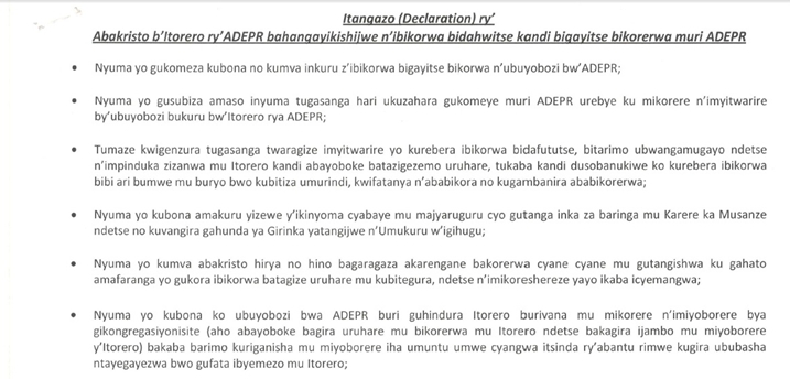 Mu kiganiro na Kigali Today, Dr Basabose, Umuhuzabikorwa w’iyo Komisiyo, yavuze ko ibikubiye muri iryo tangazo ari ukuri kw’abakristo b’Itorero ADEPR bahangayikishijwe n’ibikorwa bidahwitse kandi bigayitse bikorerwa muri iryo torero.