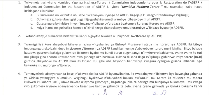 Komisiyo Nzahura-Torero ivuga ko yafashe umwanzuro wo gushyira ahagaragara itangazo, nyuma yo kwakira amabaruwa agera kuri 700 y’abayoboke ba ADEPR bishyize hamwe bagasaba ko amakosa akorwa n’ubuyobozi bukuru bw’iryo torero yakosorwa.
