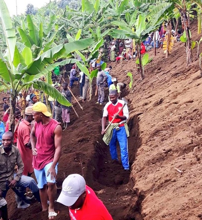 Agira ati "Twatangiye umuganda ducukura imirwanyasuri, kandi n’umuganda ngarukakwezi uzabera kuri uwo musozi, turizera ko ikibazo cy’amazi asenyera abaturage kizahita kiba amateka."