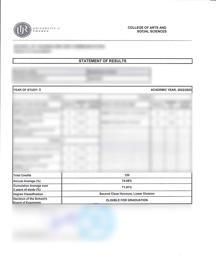 Witegereje neza, uyu munyeshuri aba atarigeze agira amanota ari munsi ya 60%, haba mu mwaka wa kabiri cyangwa mu wa gatatu, bikaba byasobanura ko nibura uwo munyeshuri yari kujya mu cyiciro cya kabiri mu rwego rwo hejuru (second class Upper division).