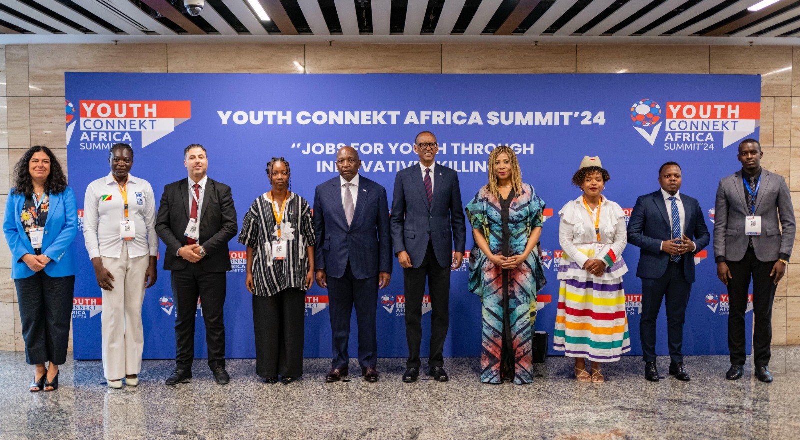 Mu gusoza ibi biganiro ku munsi wayo wa mbere, Perezida Kagame yasabanye n’urubyiruko rwitabiriye Youth Connekt 2024, bafata ‘Selfie’, n’abandi bayobozi barimo Minisitiri w’Intebe wa Lesotho, Samuel Ntsokoane Matekane.