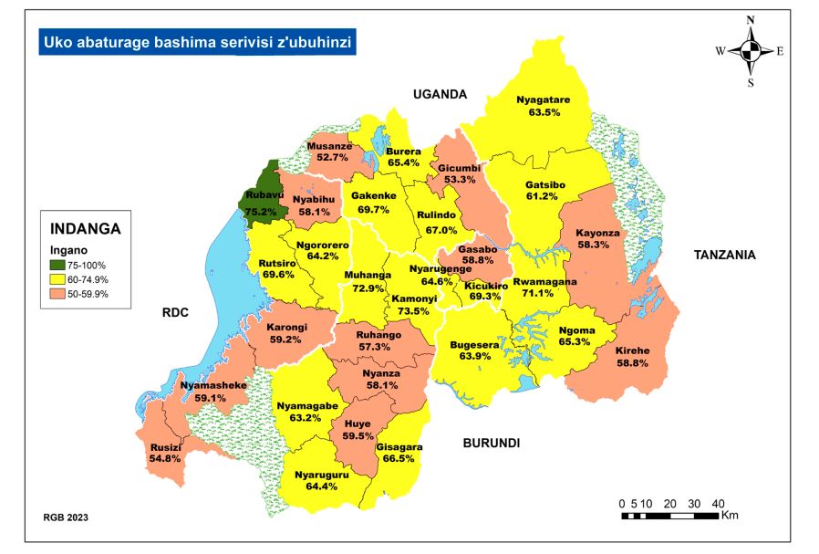 Abaturage bo mu Karere ka Rubavu ni bo bashima serivisi zo mu buhinzi ku gipimo cyo hejuru, cya 75.2% mu Rwanda, nk’uko bigaragazwa n’icyegeranyo cyakozwe n’Urwego rw’Igihugu rushinzwe Imiyoborere (RGB) cya 2023.