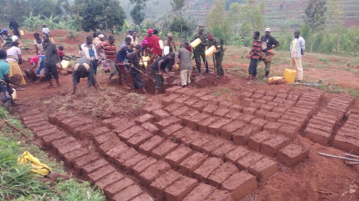 Komite nyobozi nshya yifatanyije n’abaturage kubumba amatafari yo kwifashisha mu kubaka inzu z’abatishoboye.