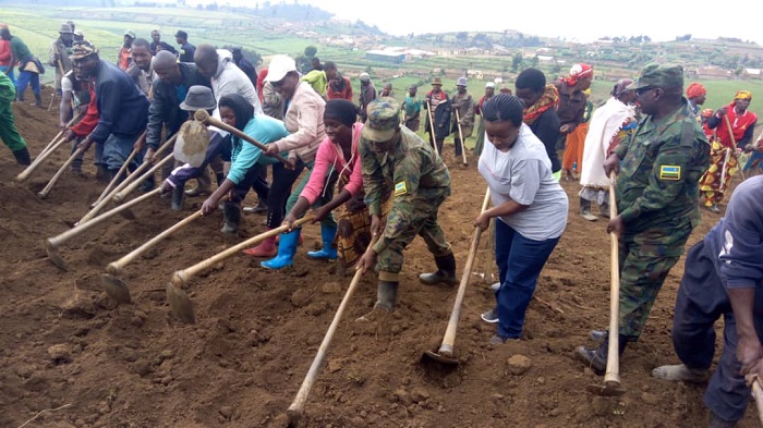 Umuganda rusange usoza ukwezi kwa Nzeri ku rwego rw’akarere ka Kayonza wakorewe mu murenge wa Rukara, akagari ka Kawangire.